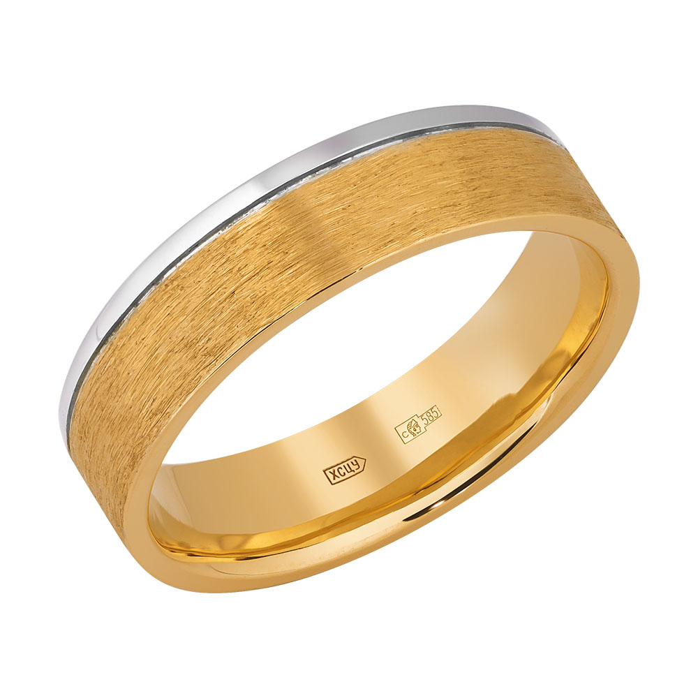 Это оригинальное золотое кольцо сочетает в себе черты классических ювелирных шедевров и современные элементы. Традиционная шинка кольца обладает оптимальной шириной, благодаря чему украшение становится еще более универсальным. А использование в композиции двух разновидностей золота лишь усиливает это впечатление.