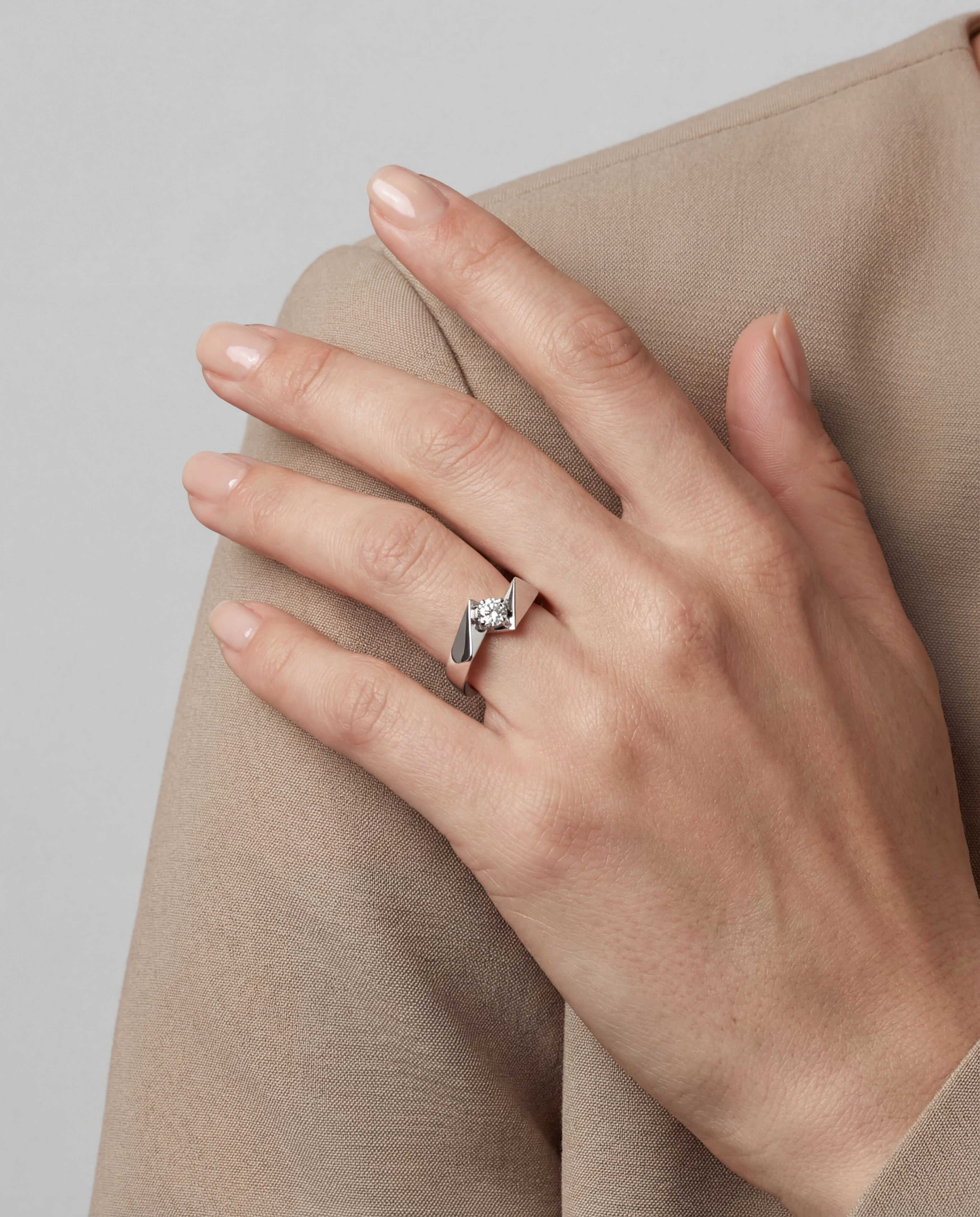 Помолвочное кольцо из белого золота с бриллиантом 0,088 карата