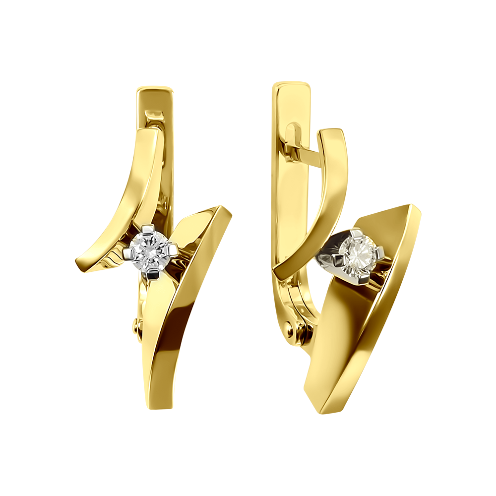Эти необычные серьги впечатляют красотой силуэта и качеством исполнения. Плавные изгибы полированного золота приковывают взгляды окружающих и усиливают природный блеск чистых бриллиантов классической огранки. Эти серьги выглядят великолепно и продуманы до мелочей. Ведь здесь использована и классическая английская застежка, которой удобно пользоваться.