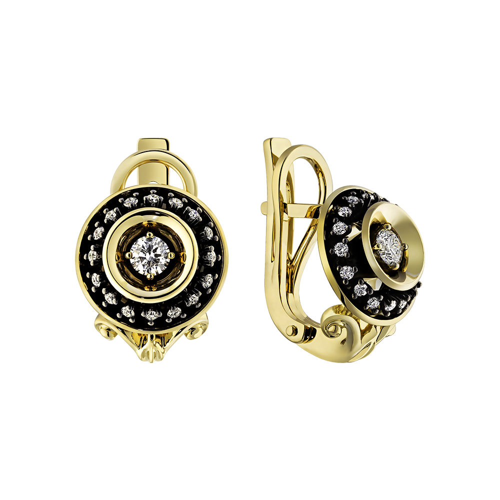 Золотые серьги с бриллиантами 0,444 карата и чернением