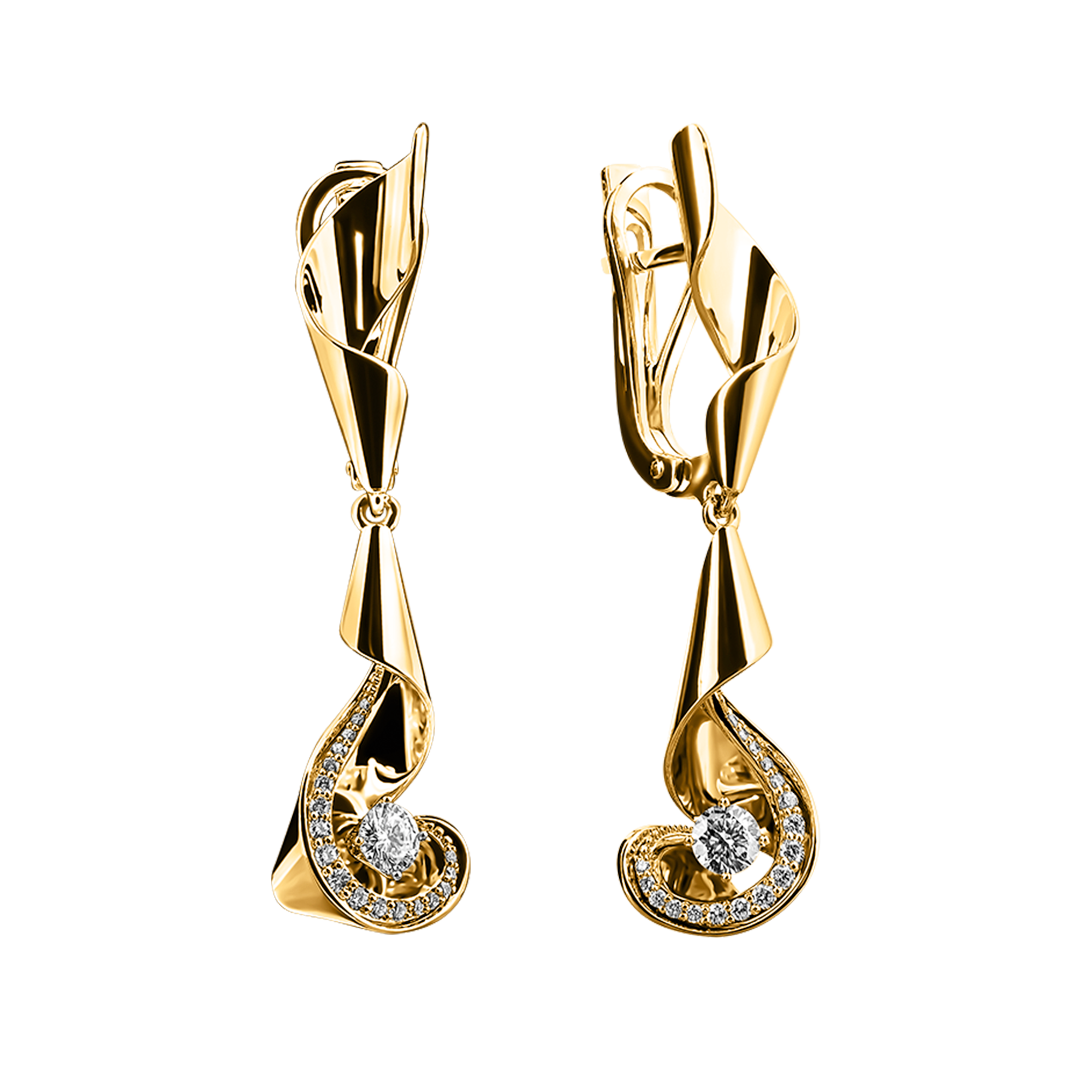 Серьги словно застывшее в золоте и бриллиантах мгновение, когда развязывается самый долгожданный подарок.