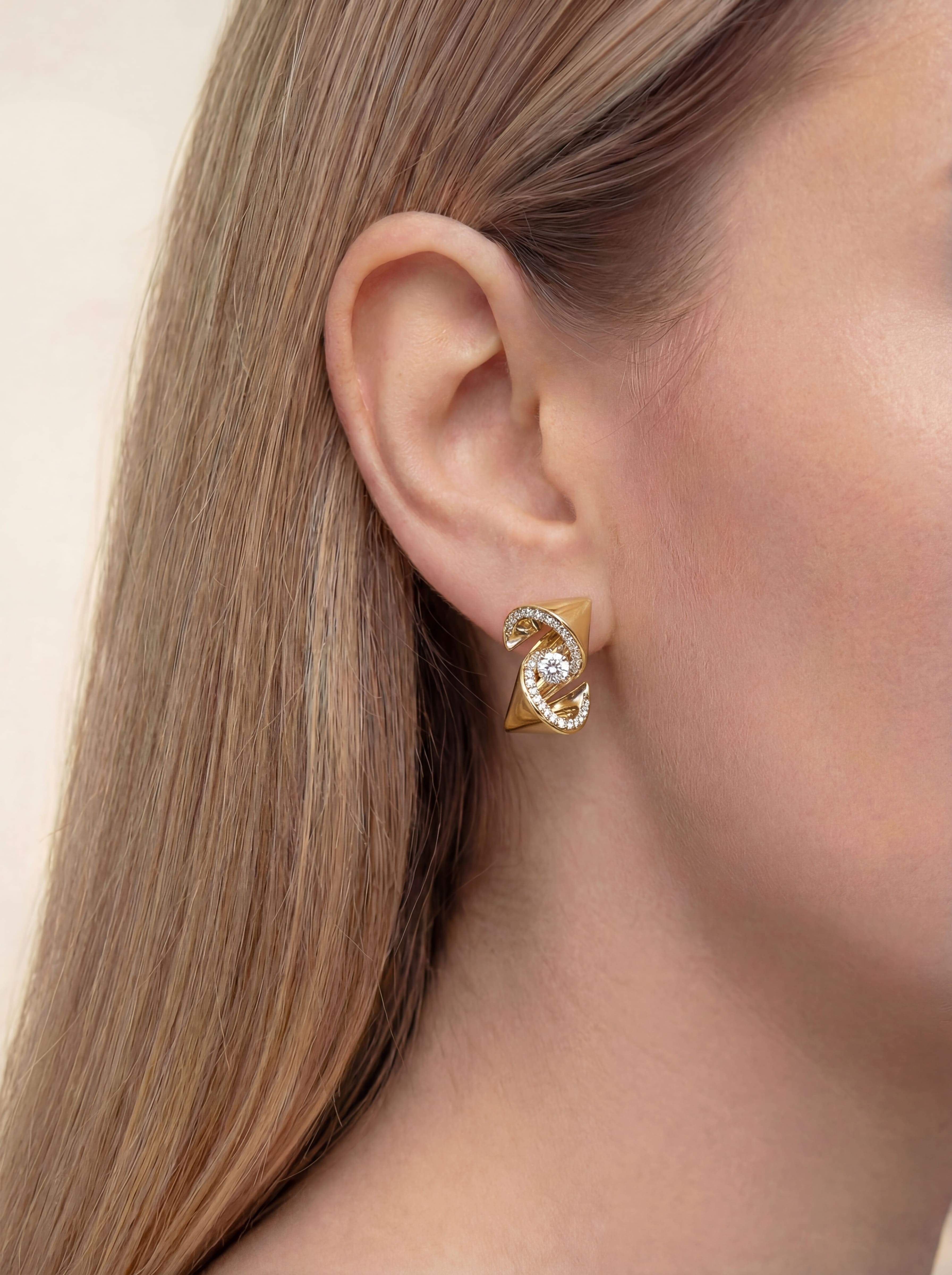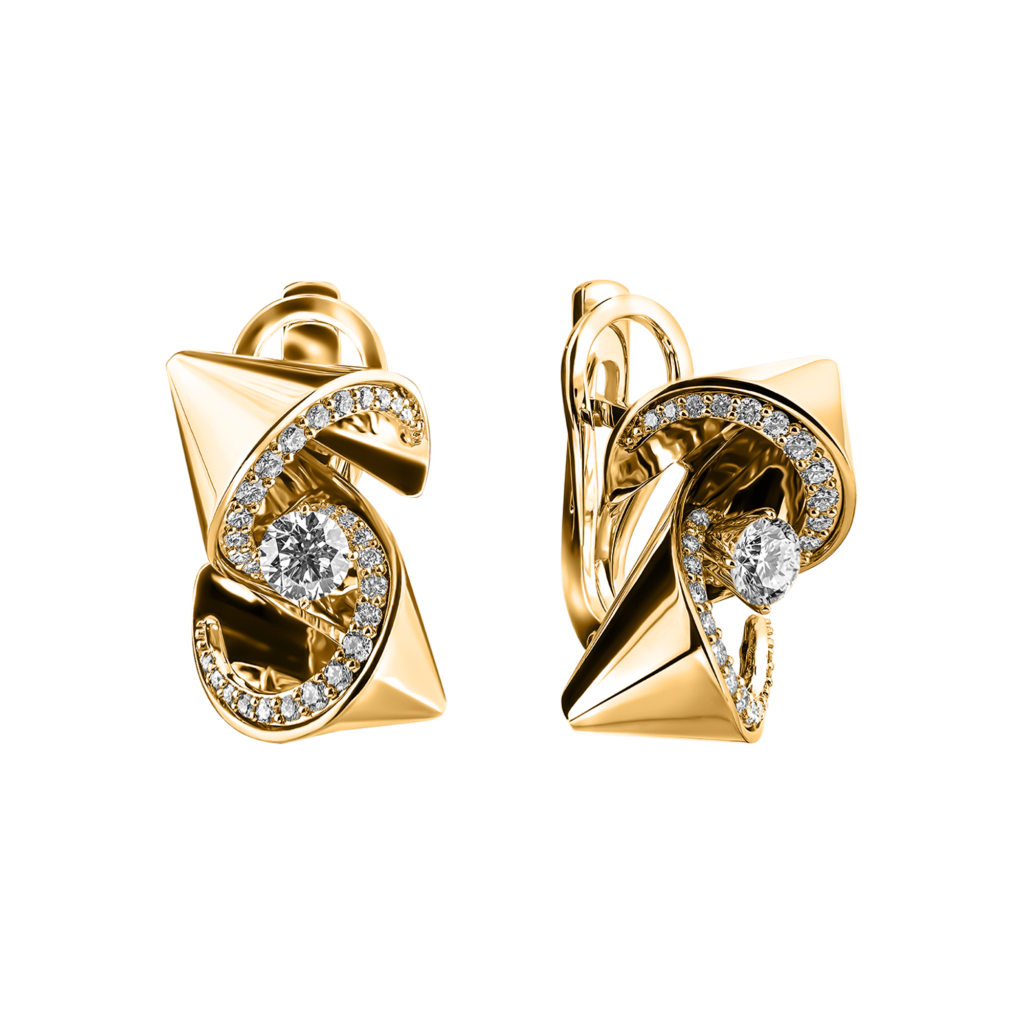 Откройте для себя серьги, в которых застыла динамика праздника. Сложный и изящный дизайн в виде лент, исполненный в золоте и украшенный бриллиантами, подчеркивает утонченный вкус и любовь к искусству.
