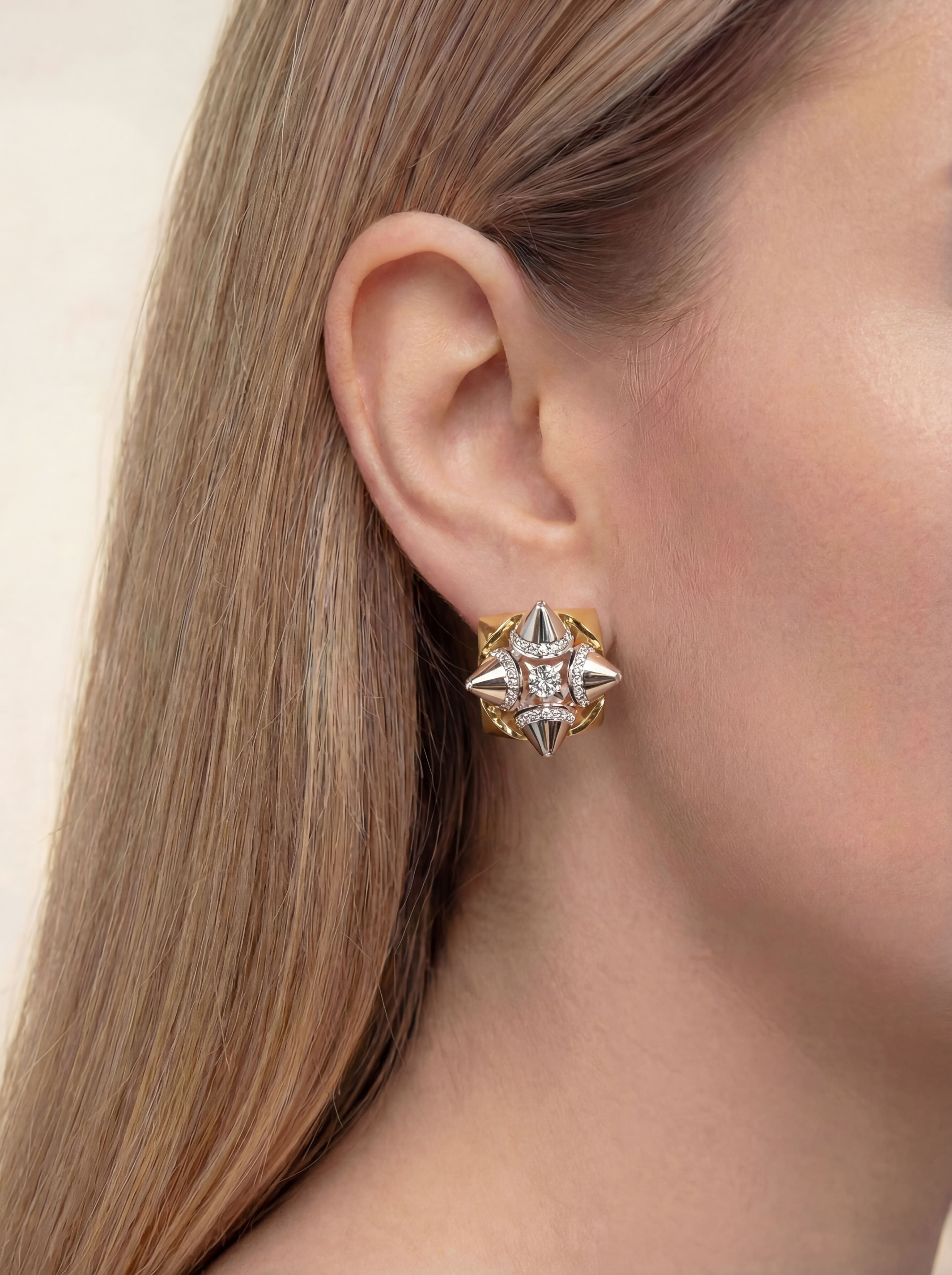 Изящные золотые серьги станут идеальным акцентом для особого случая. Нежная форма праздничного банта, усыпанная сверкающими бриллиантами, символизирует радость, подарки и волшебство. Серьги выполнены из желтого и белого золота и станут универсальным украшением, которое дополнит как вечерний наряд, так и станет ярким акцентом в повседневном образе.