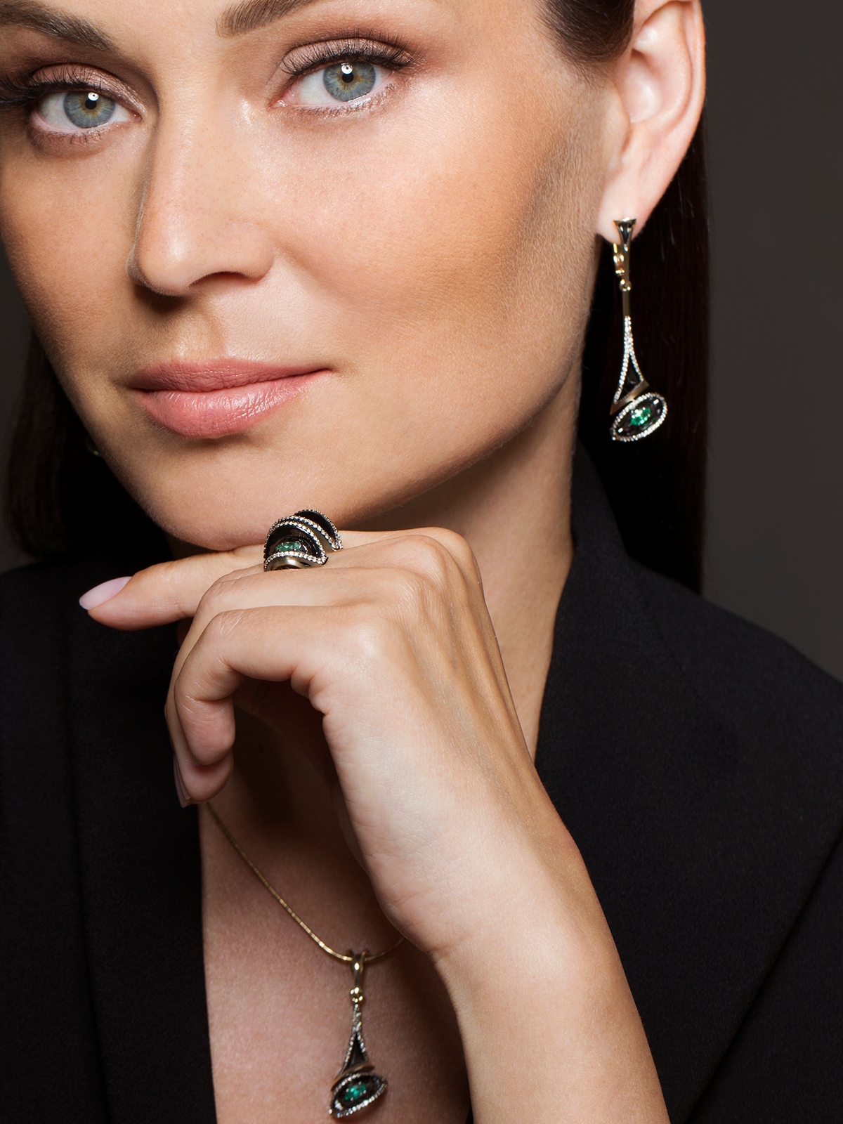 Взгляните на изящество линий украшения, что создают необычайно воздушный и легкий силуэт! Оцените высокое качество ручной работы, безупречность материалов и композиции — ведь в работе ювелиры Ringo используют только сертифицированные камни и золото высокой пробы.